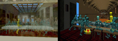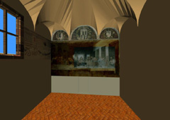 In the distance I recognize the painting of Last Supper ... I navigate towards it. I take the wand, point to the painting, and am transported inside the "reffettorio" ... At the end of this space I again see the painting hanging high on the wall. As I approach the Last Supper it becomes transparent, I touch the wall! it transforms into a 3D space.
