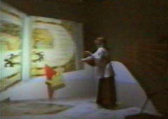 The interactive visitor freely explores the different dimensions of the two key centuries through the use of the CAVE(TM) a Virtual Reality Theater. When the user enters the CAVE, the Multi Mega Book is in front of him/her. S/he can turn the pages, and move through the pages into