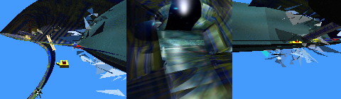 My exploration continues ... I discover a light blue transparent gateway. Objects are flying out of it: papers, pixels, books, disks, streams of light ... I slip in and I find myself travelling inside a tunnel, a very fast vortex among other objects ... codes, numbers, keywords, symbols, machines, fragments of landscapes, layers of 'networks', the images and sounds are intense and bombard me from all sides ...